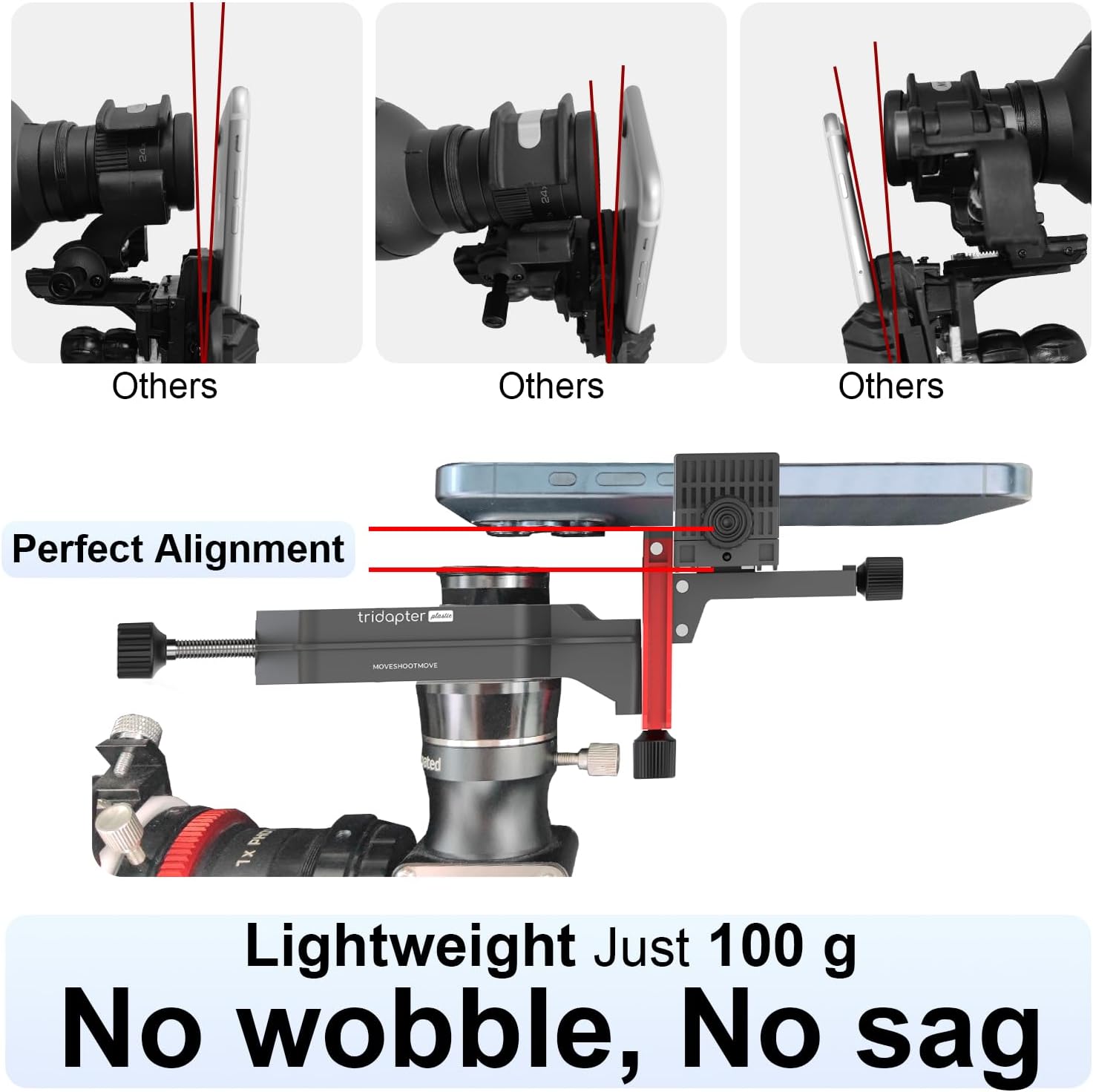 𝐖𝐡𝐲 𝐃𝐨𝐞𝐬 𝐋𝐢𝐠𝐡𝐭𝐰𝐞𝐢𝐠𝐡𝐭 𝐌𝐚𝐭𝐭𝐞𝐫? A heavy adapter might sound secure, nevertheless it really magnifies small hand actions, inflicting the lens to shift and blur your pictures. Our light-weight design follows the precept of leverage—much less weight means much less drive is required to maintain the system regular. This reduces shake from hand actions, retains your cellphone and scope aligned effortlessly, and delivers clearer, sharper pictures with ease.
