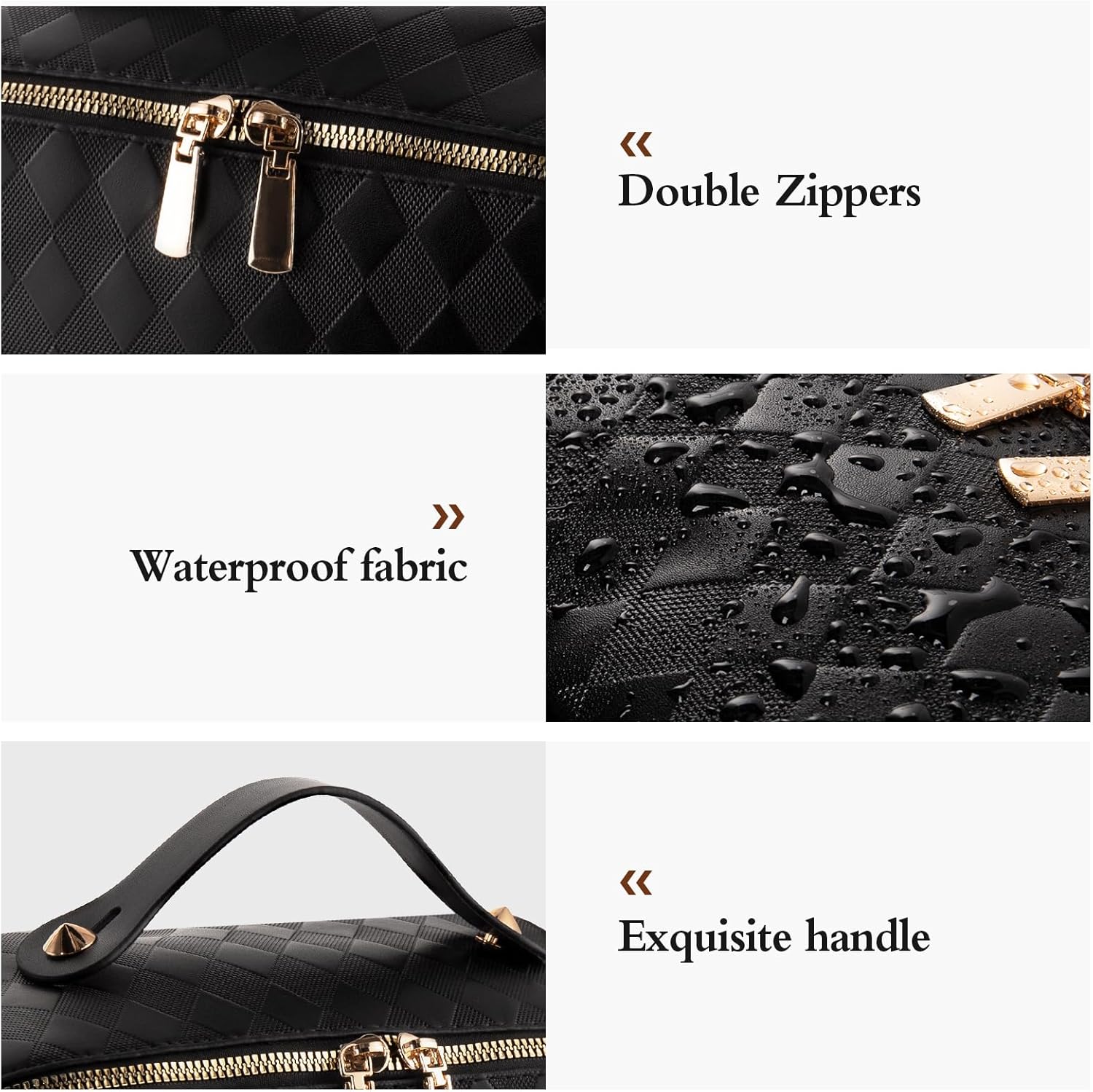 Abiudeng 2 piece Travel Makeup Bag, Large Capacity for Travel Essentials, Open Flat Makeup bag Organizer with Divider and Handle, black