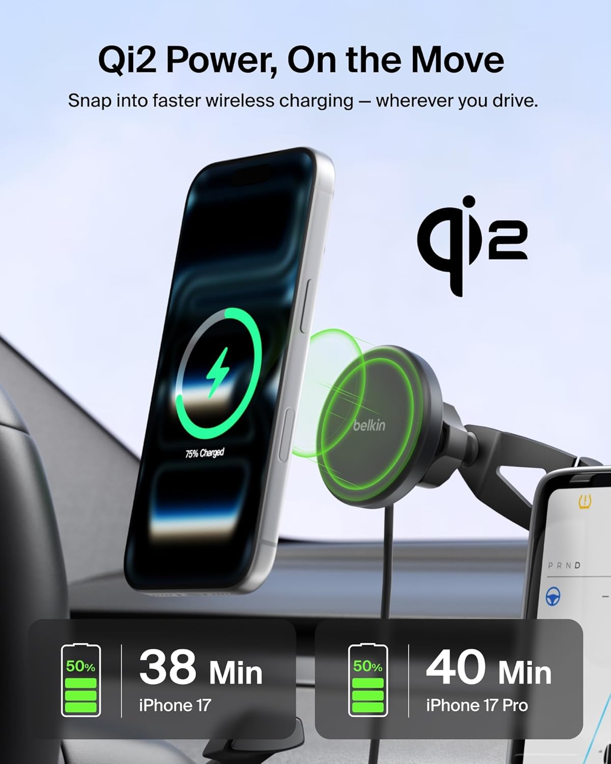QI2 WIRELESS CHARGING ON THE ROAD: This automotive charger delivers quick, environment friendly wi-fi charging with Qi2 know-how. Excellent as an iPhone charger or MagSafe charger, it retains your system powered up whereas driving with out cable muddle.