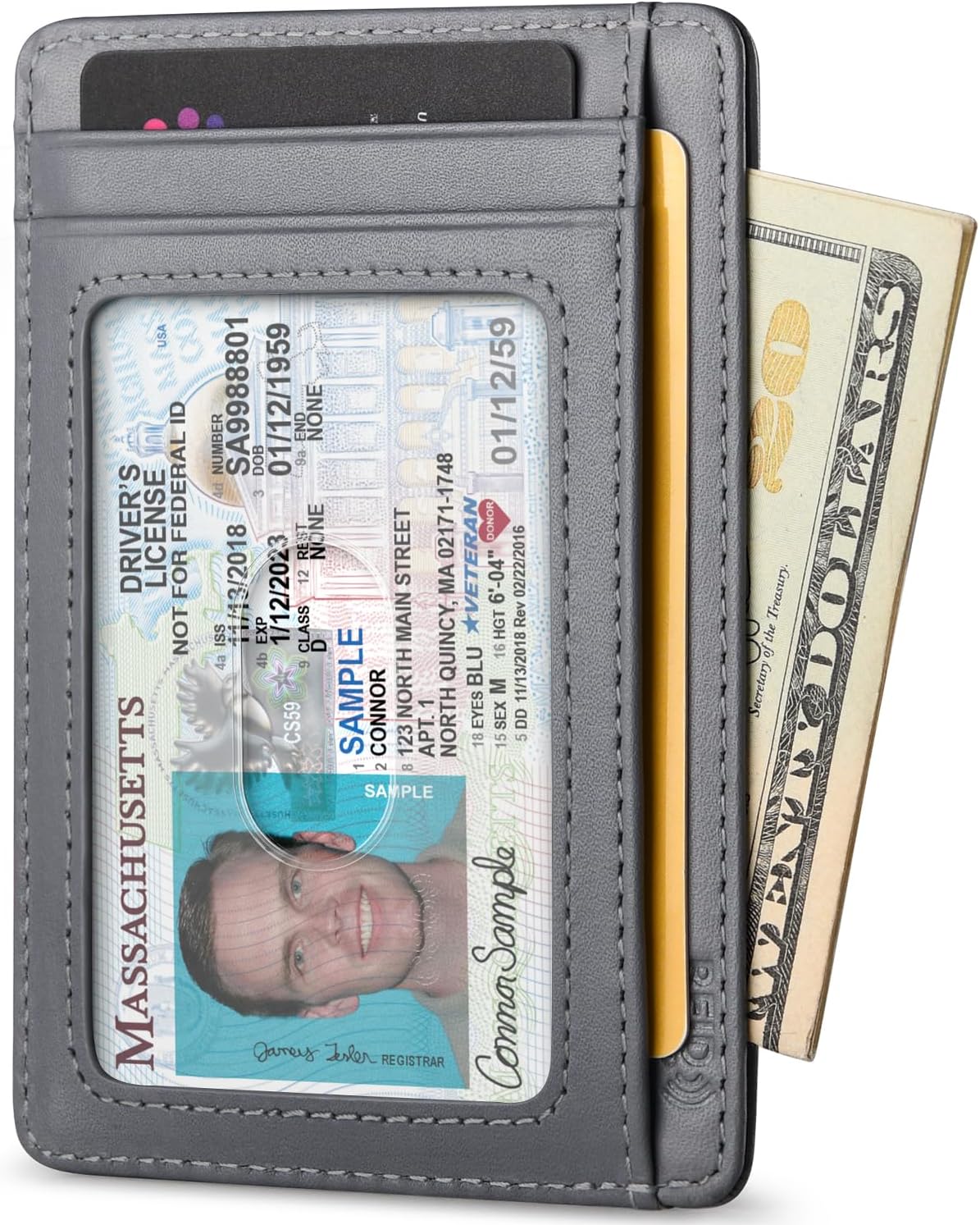 – 1 clear window slot with finger glide for ID, work badge or driver’s license