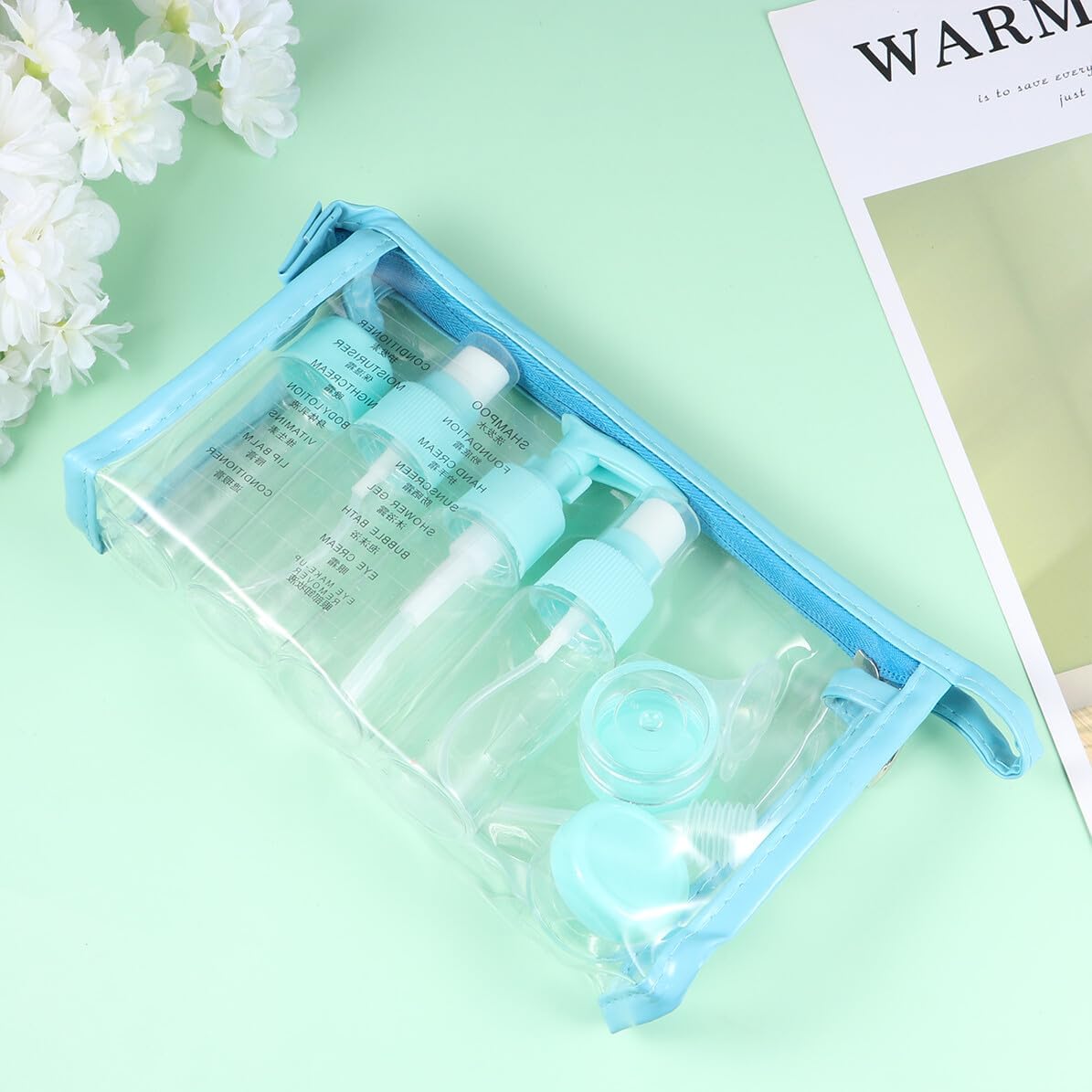 Blue Journey Dispense Bottle Set with Zipper Bag Moveable Refillable Spray Bottles Lotion Cream Containers for Residence and Out of doors Use Compact Plastic Liquid Holder Equipment