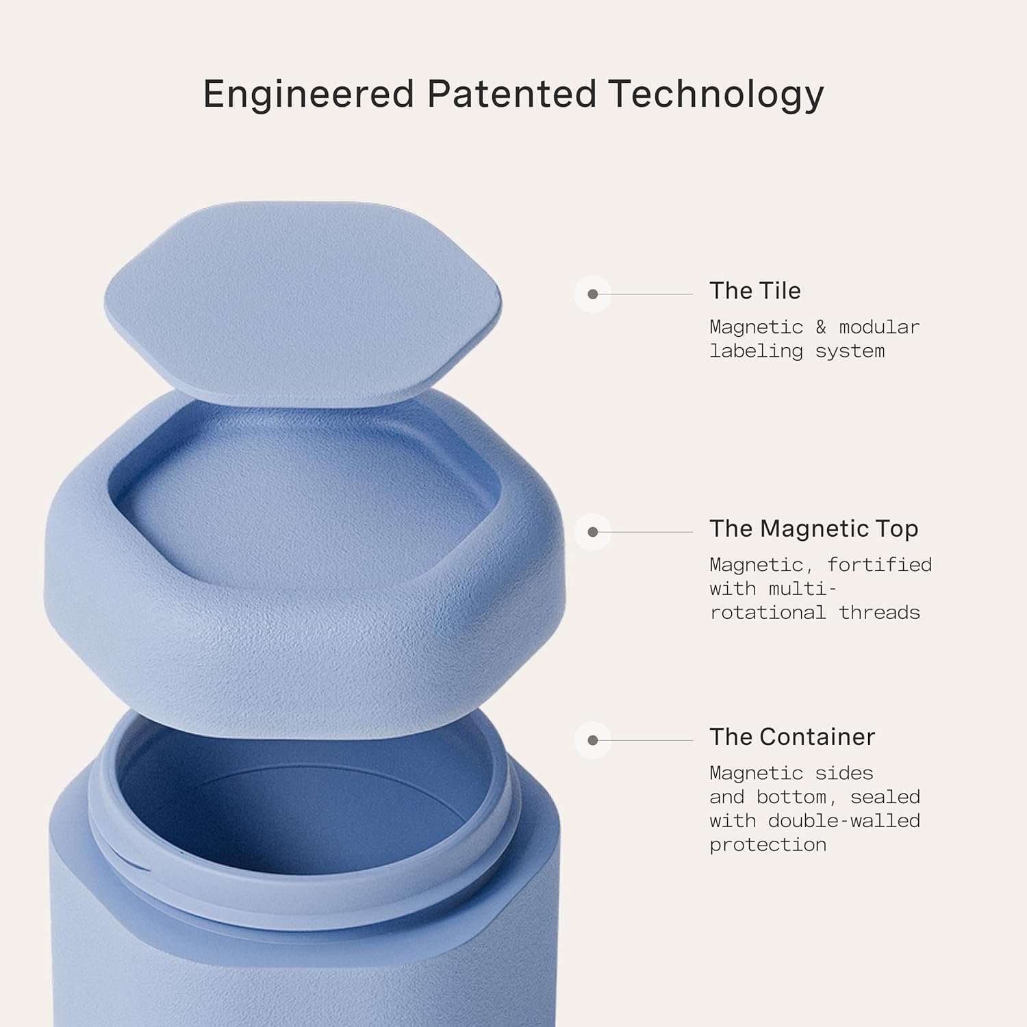 PATENTED MAGNETIC DESIGN – Designed for seamless storage, our journey capsules function a magnetic design that connects every container vertically or horizontally. They embody magnetic labels that seamlessly swap between The Flex Small, The Flex Medium, and The Flex Giant Capsules.