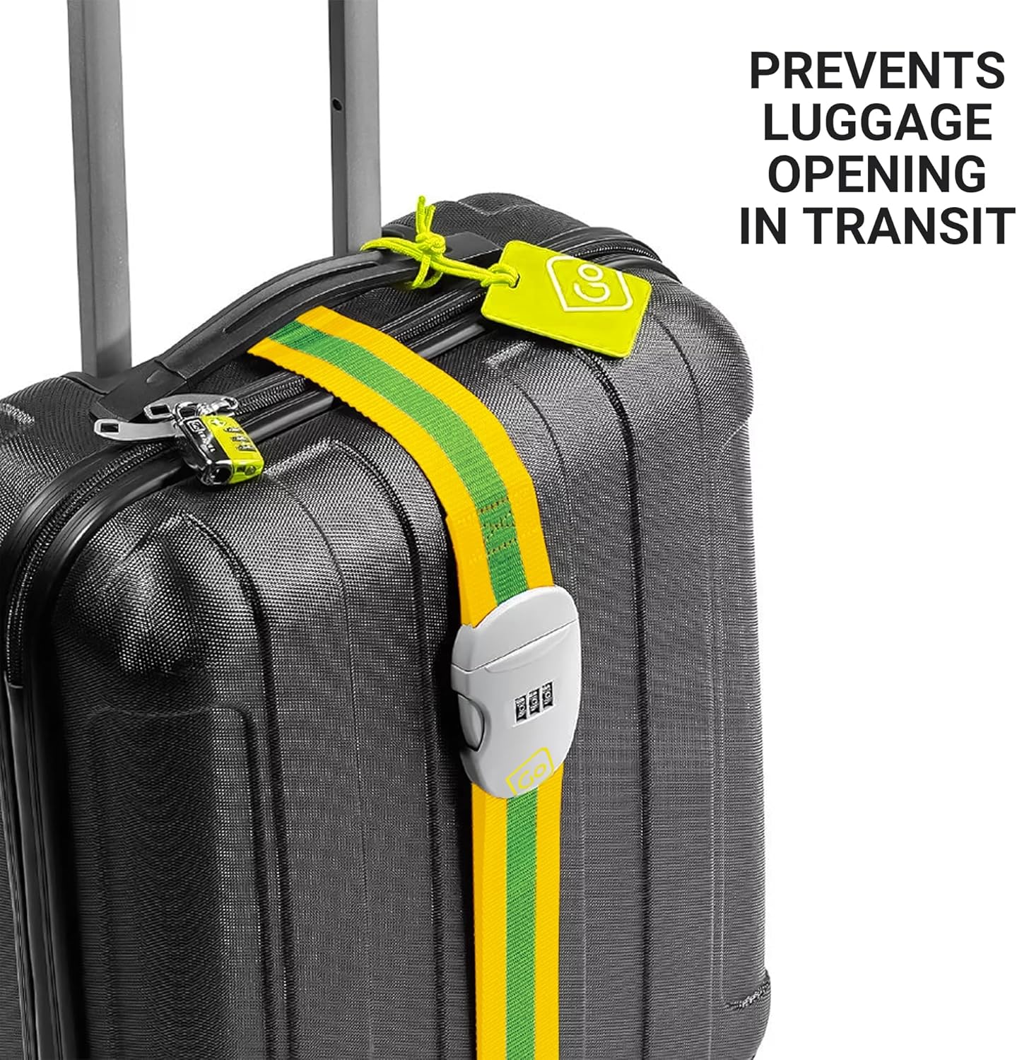 Straightforward Baggage Identification: Find your belongings simply in busy journey terminals with Go Journey’s Combi Baggage Strap. Accessible in 2 vibrant coloration mixtures—blue/orange and yellow/inexperienced—its distinctive design helps you rapidly spot your baggage.