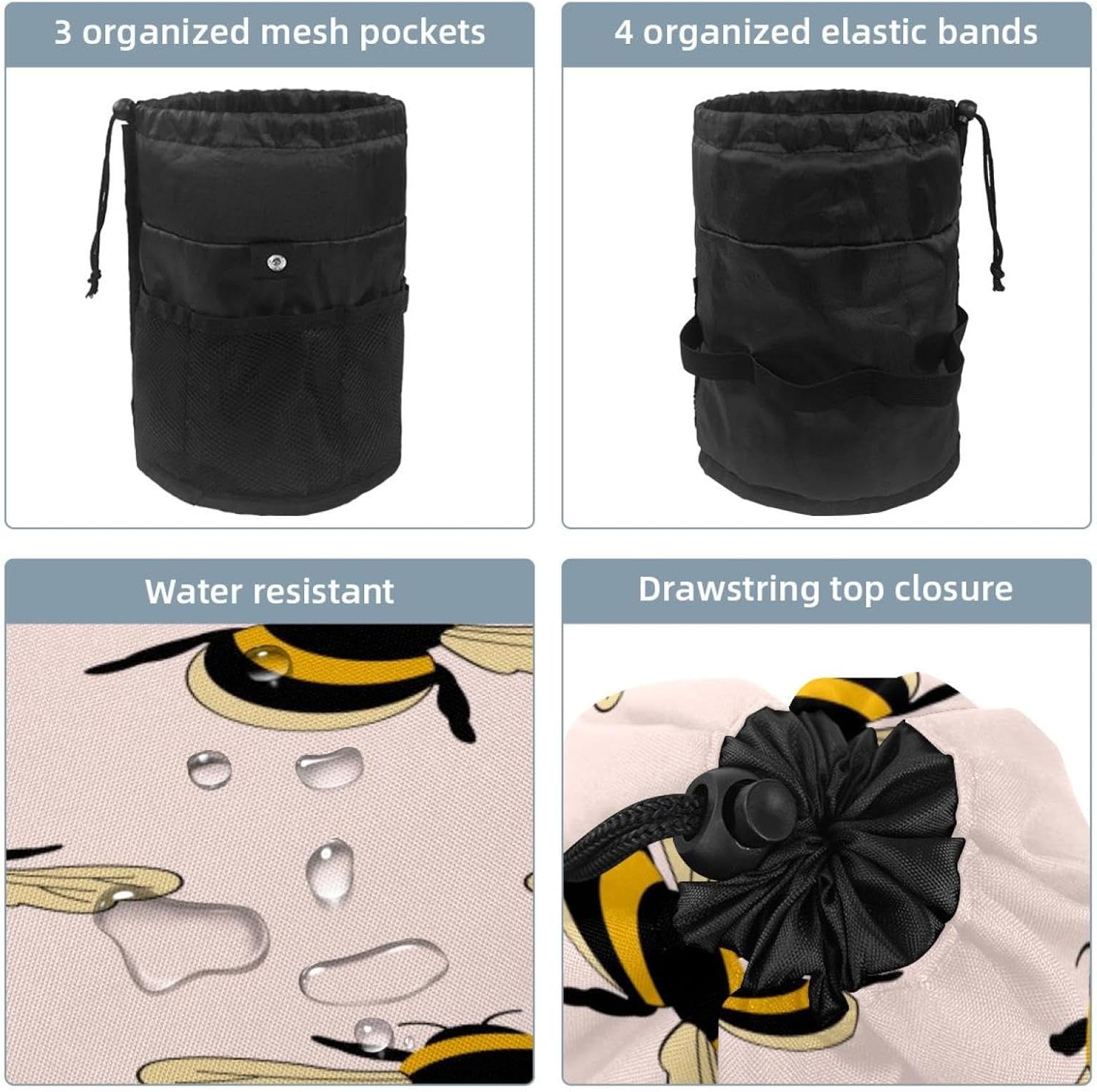Wash Bag Construction — Inbuilt 3 mesh pockets, 4 elastics straps, cosmetics could be separated to keep away from air pollution. Drawstring closure that securely retains the bag closed and prevents the tiniest of your objects from falling out.