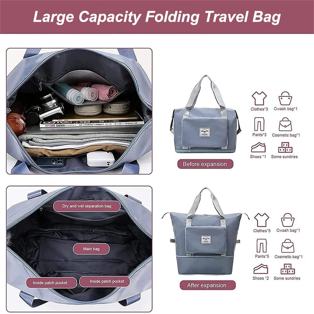 2. Giant-capacity foldable journey bag, the very best companion in journey!