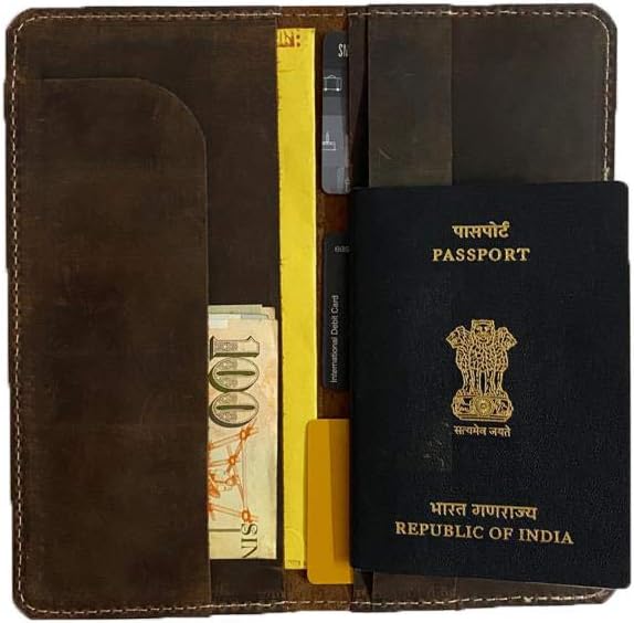 100% Real Luxurious Cowhide Rustic Minimalist Leather-based Handmade Journey case Cowl bag Passport Pockets Holder -Retains Passport, ID card, Vaccination Go Certificates, Credit score/Debit playing cards, Paper payments, and extra in a single handy place—good for worldwide journey. Stunning Pure Leather-based which is able to age with character.