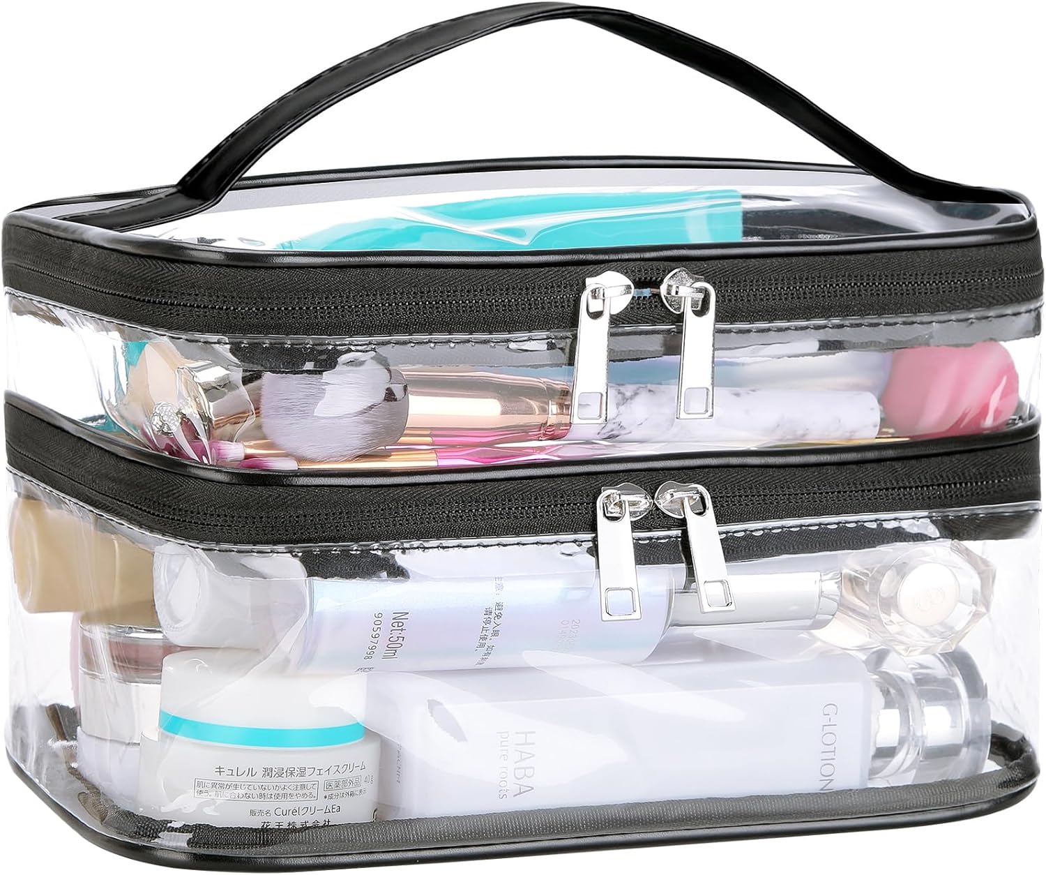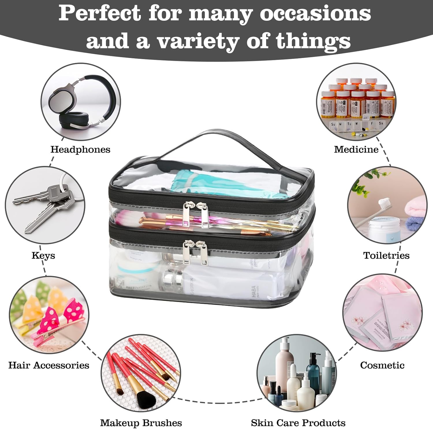 QUALITY MADE – Created from sturdy and clear PVC materials,Strengthened stitching seam and durable double zipper make sure that this clear make-up bag can bear long run use with out tearing on the seam