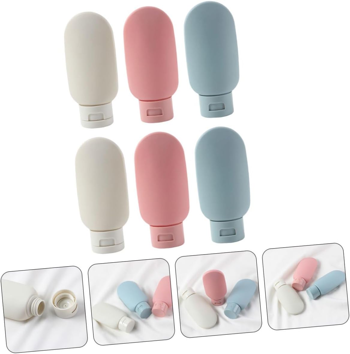 6Pcs Refillable Silicone Journey Bottles Squeezable Lotion Containers with Vast Mouth for Shampoo Conditioner Toiletries Moveable Multi-color Design for Journey and Random Shade