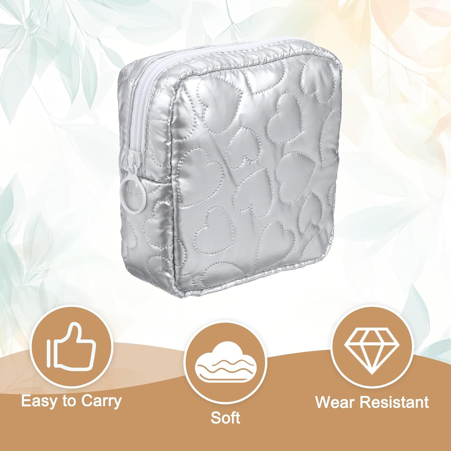 Options: The PU beauty bag is supplied with a metallic zipper. The graceful and durable zipper prevents gadgets from falling out of the bag, guaranteeing that the gadgets are secure and personal, and prevents moisture and mud from coming into. The compact and light-weight design makes it simple to hold.