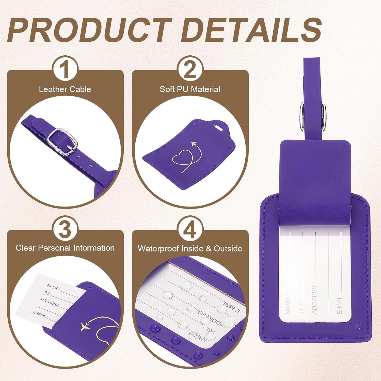This baggage tag is manufactured from sturdy PU leather-based, waterproof, dustproof, and wear-resistant, excellent for touring.