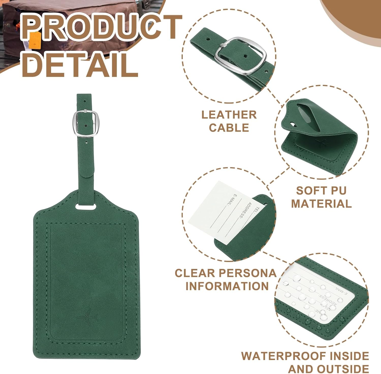 This baggage tag is manufactured from sturdy PU leather-based, waterproof, dustproof, and wear-resistant, excellent for touring.
