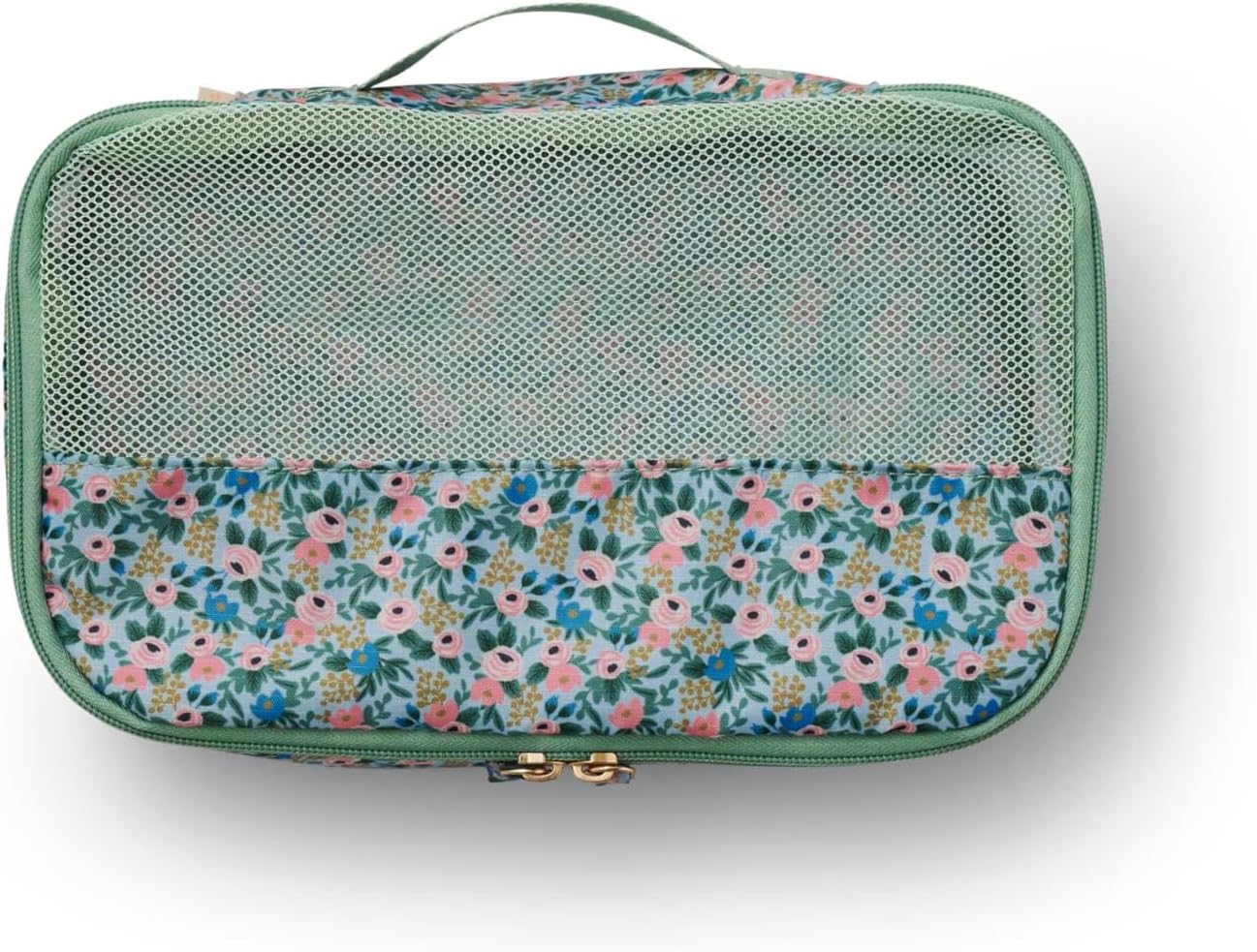 Make your packing prettier with our set of three packing cubes with zipper closures and an identical drawstring mesh laundry bag. Say goodbye to cumbersome baggage that takes up pointless house.