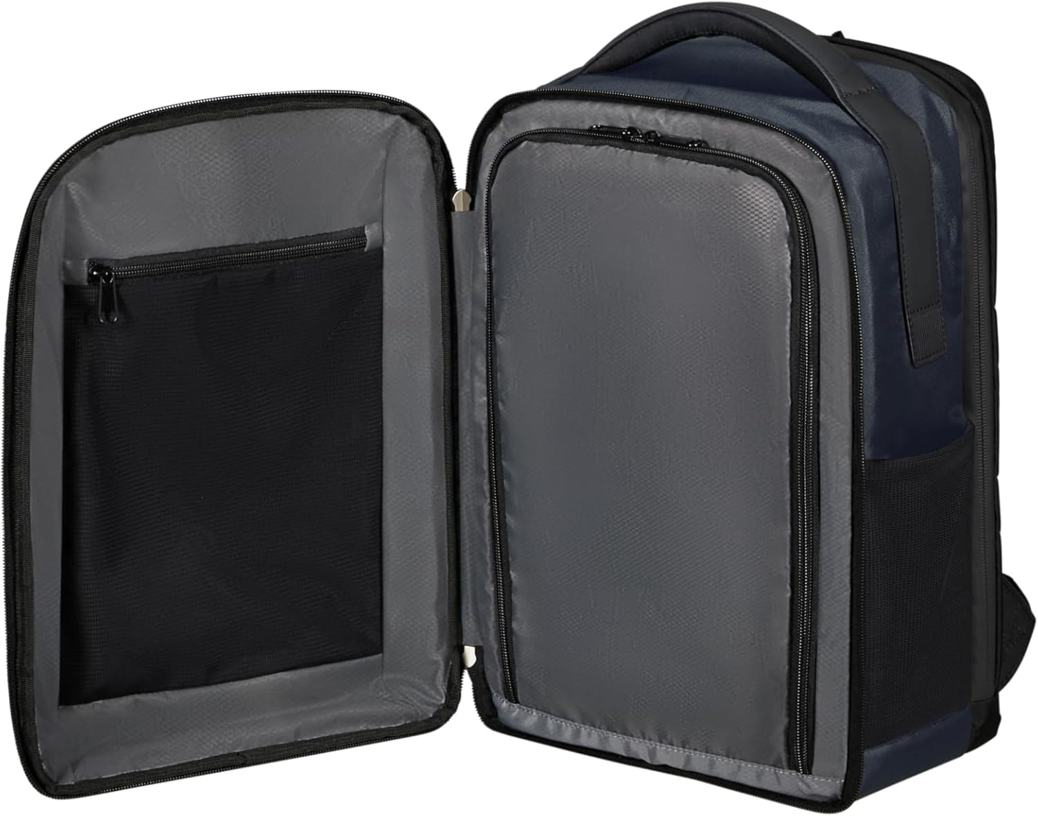 Laptop computer & pill compartment: Water-repellent, padded compartment for laptops as much as 14.1″ and pill/iPad as much as 10.5″
