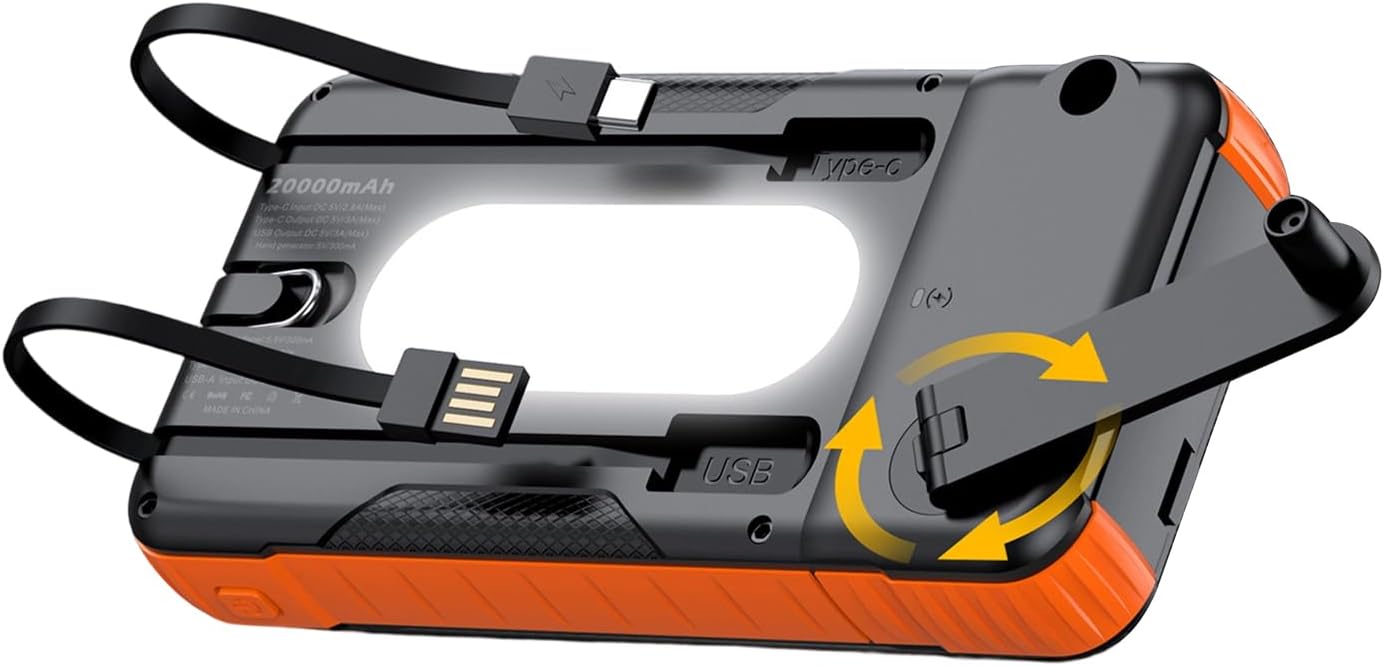 The hand crank photo voltaic charger power financial institution for cellphone is a necessary survival tools designed to maintain your instruments charged anytime and wherever. With a sturdy 20000mAh battery pack, it gives prolonged power provide for smartphones, cameras, tablets, and extra. Outfitted with a built-in brilliant flashlight, it gives reliable illumination throughout tenting, mountain climbing, or fishing journeys. Its shockproof design improves sturdiness, making it appropriate for backpacking adventures and music festivals. This versatile power financial institution helps numerous actions like journey and out of doors exploration whereas harnessing photo voltaic power and hand cranking as reliable charging strategies. The hand crank photo voltaic charger power financial institution for cellphone is your appropriate companion for staying related in any scenario.