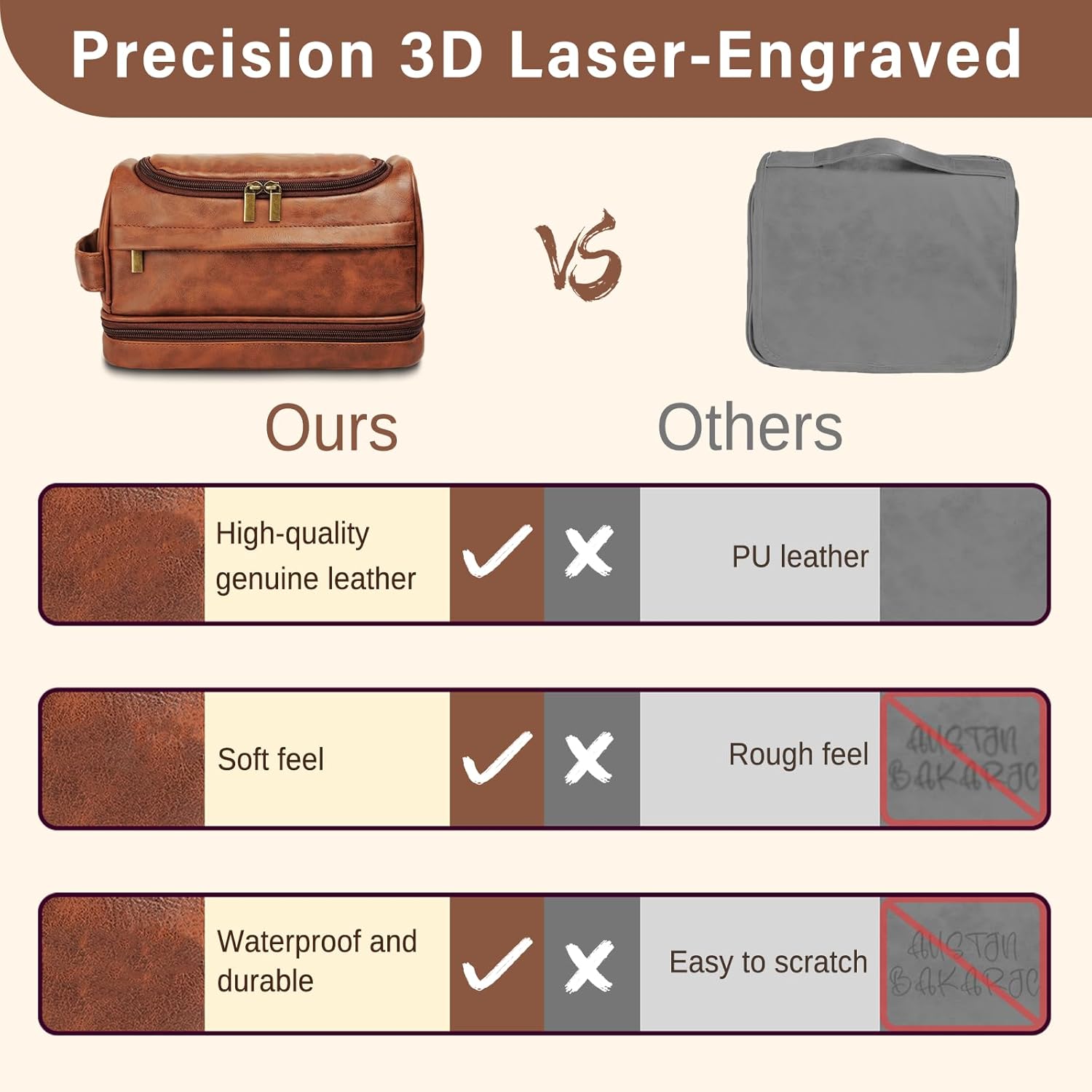 Toiletry Bag for Males, Leather-based Journey Pouch Bag, Waterproof Toiletries Bag, Males’s Shaving Grooming Package, Presents for Him, Husband, Son, Boyfriend, Dad, Boys, Groomsmen, Traveler, Grandpa