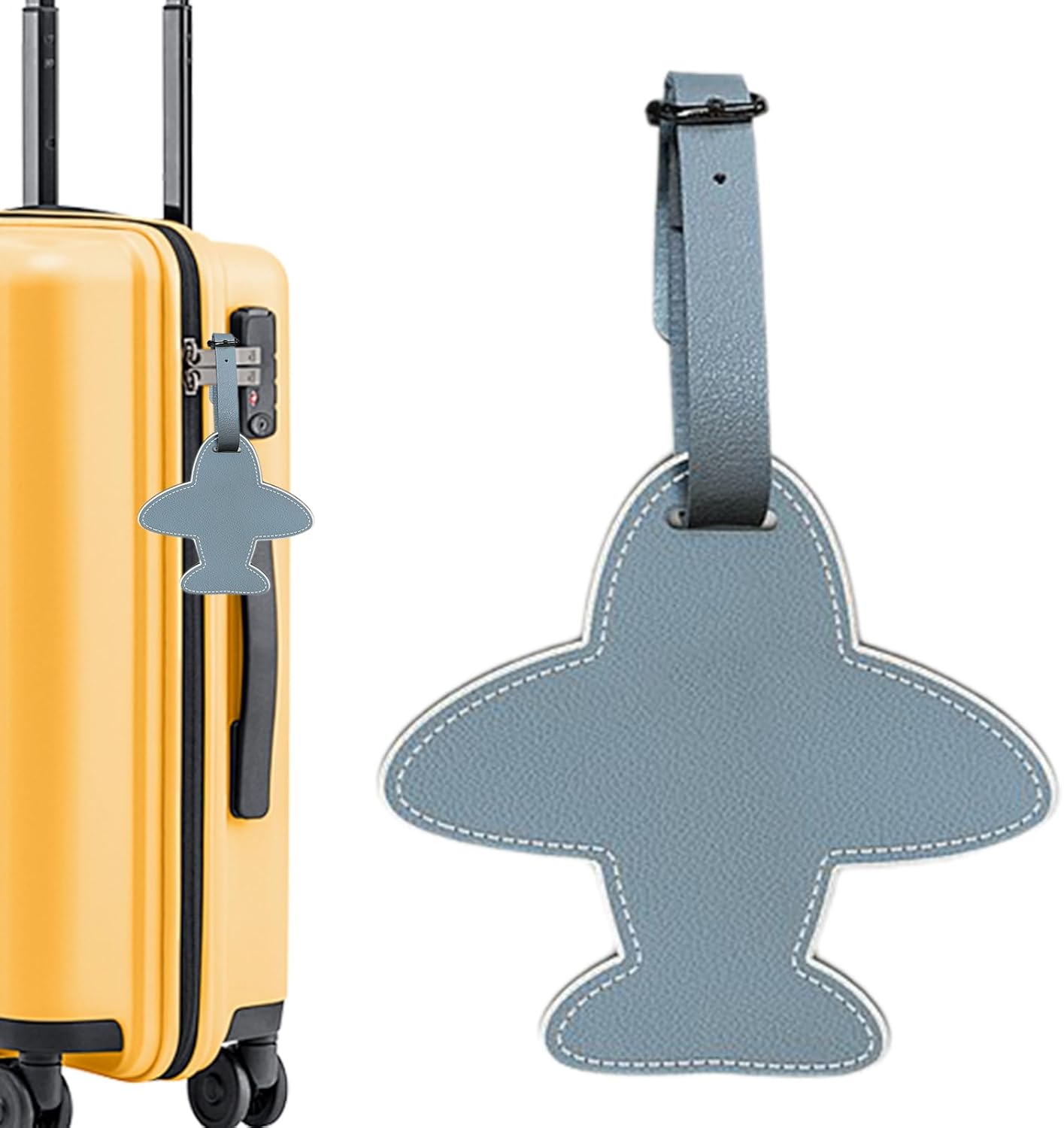Travel Tags, Airplane Shaped Accessory, Faux Leather Identifier, Privacy Back Cover, Security Address Panel, Adventure Equipment Element, Perfect for Yellow Pair Kit