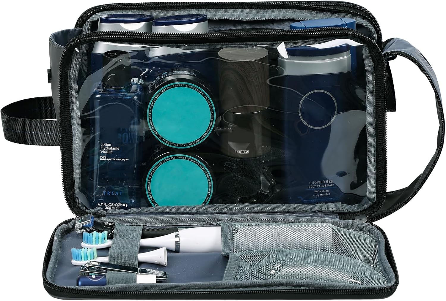 EXTRA LARGE CAPACIT: 12 x 6.1 x 7.1 inches. Meet all of the storage wants of full-size toiletries or shaving provides, and the bottles can stand upright in it. A number of pockets inside preserve all private objects fantastically organized